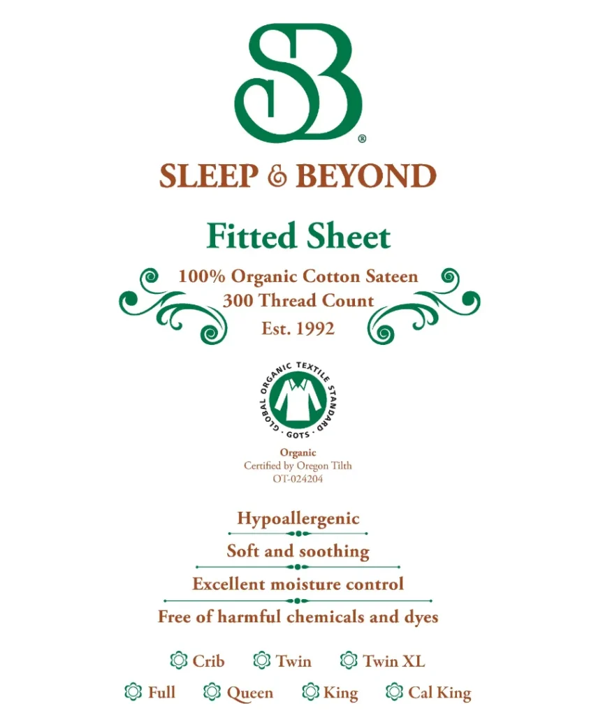 Our organic cotton sateen fitted sheet rivals those found in the world’s finest hotels and resorts. This fitted sheet is the perfect blend of class, durability, and comfort. A buttery, smooth, soft fitted sheet that serves as the foundation for restorative sleep. A customer favorite, this sheet is made of the finest organic cotton and is free of pesticides and carcinogenic chemicals. We think you’ll agree with us when we say this is like no other bedding in the world.