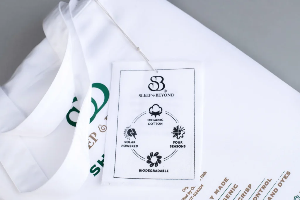 - Ethically and eco-consciously made from start to finish with 100% organic cotton, using solar power, and 91% less water in our Fair Trade-certified factory in India. Product labels are 100% organic cotton. No harmful emissions are created during the sustainable production process.