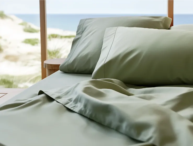 Buttery soft and cool to the touch. Naturally antimicrobial and hypoallergenic. Colors: sand, dove grey, sage green.