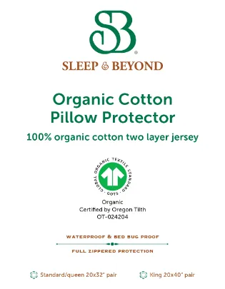 Chances are, you and your pillow are pretty close. Your pillow is where sweet dreams are made! This innovative, 100% organic cotton two-layer jersey pillow encasement offers a zippered waterproof solution to prolong the life of your pillow and protect it from moisture, stains, leaks, dust mites, and bed bugs.