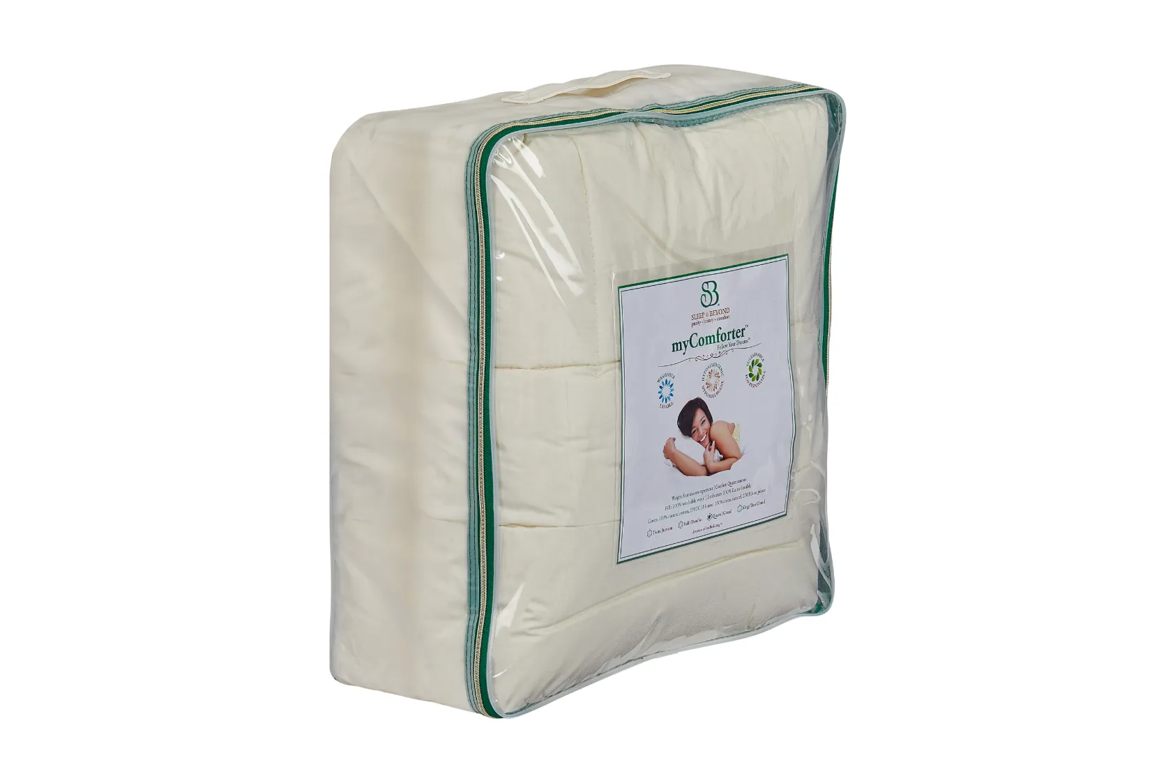 Filled with 100% washable wool, this luxurious and pure comforter provides a healthier and longer-lasting alternative to feathers, down, polyester, and other synthetic fibers.