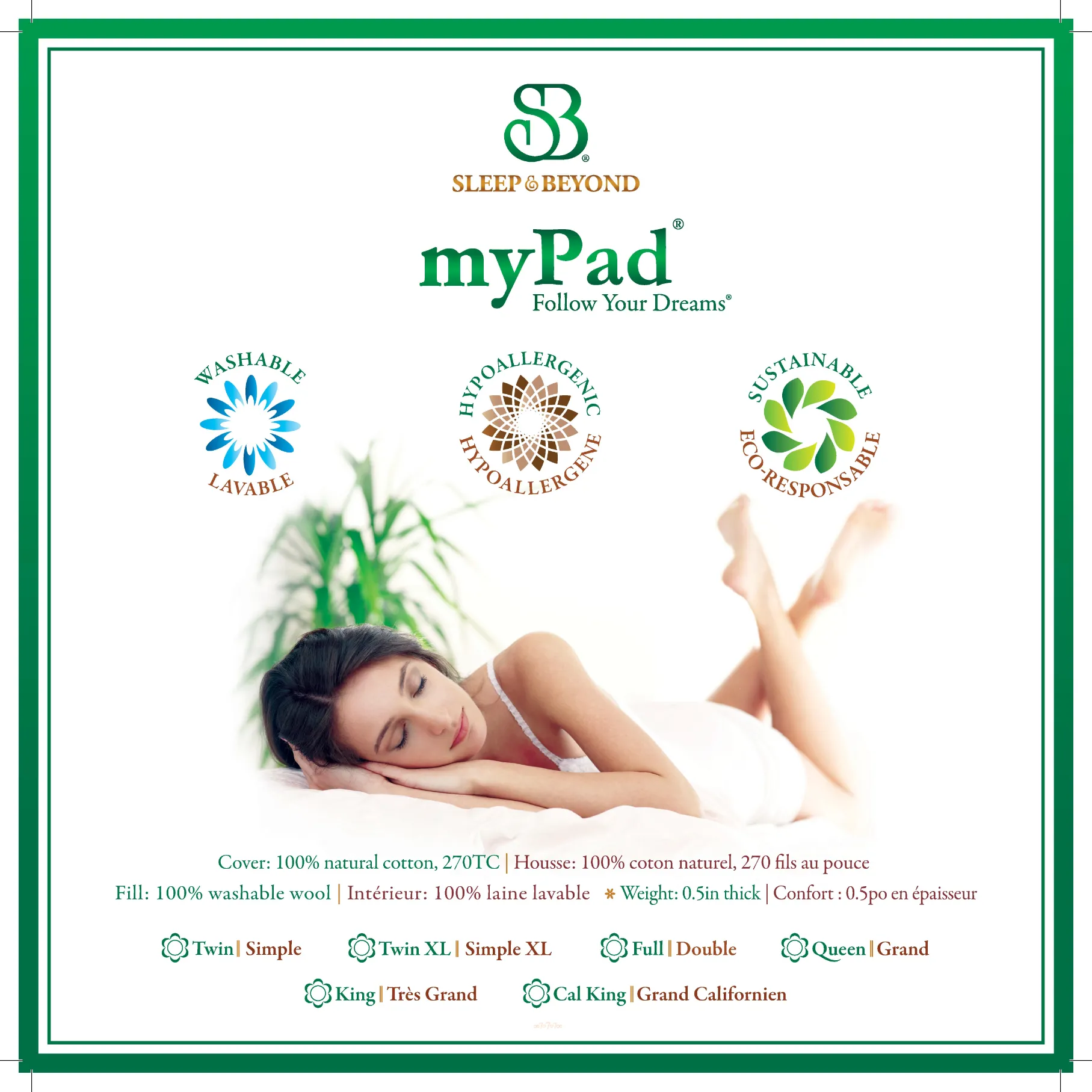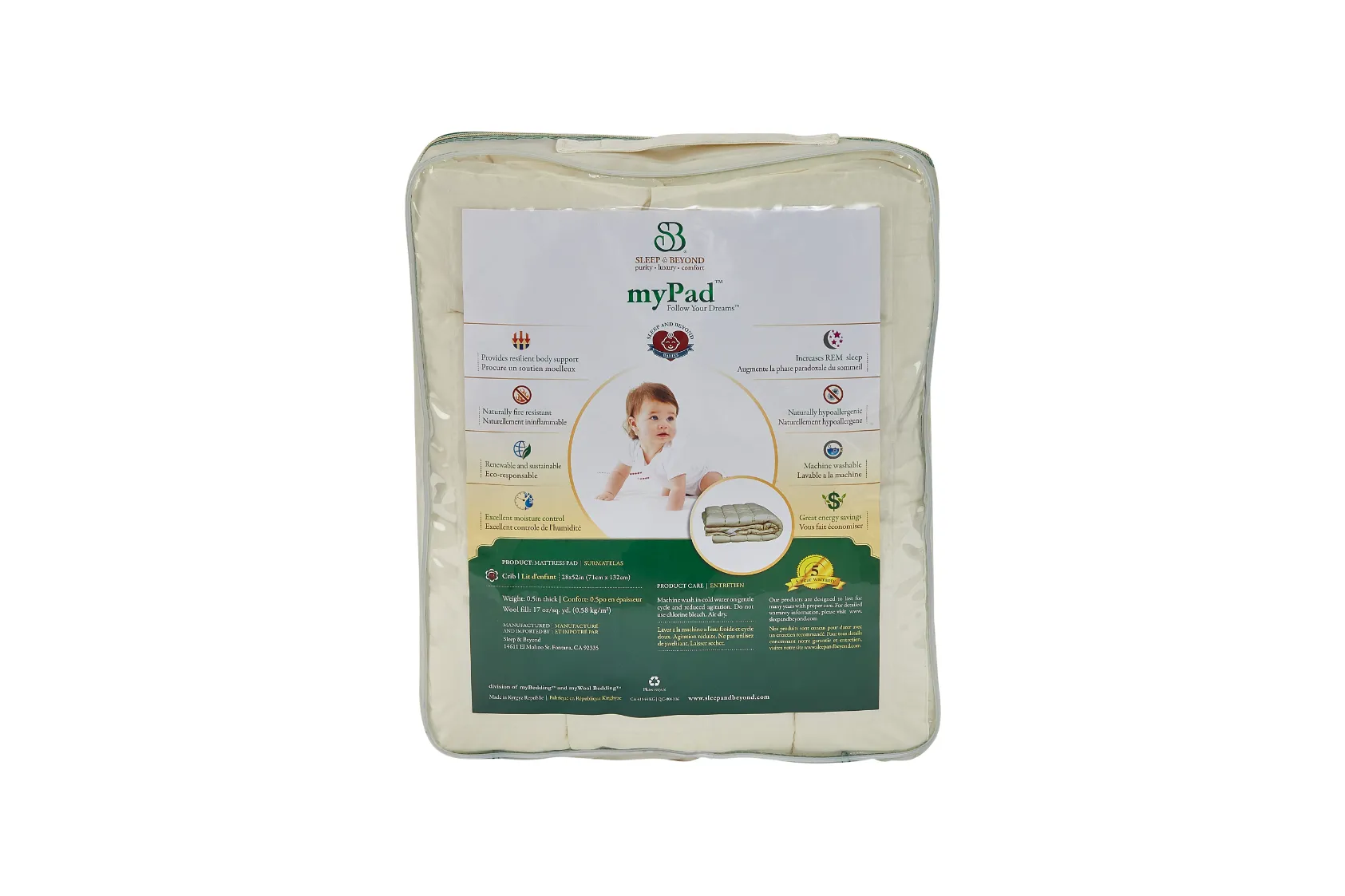 - Certification: Fabric: Oeko Tex, Fill: Woolmark