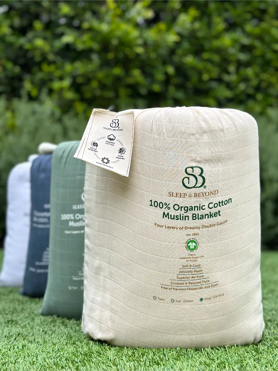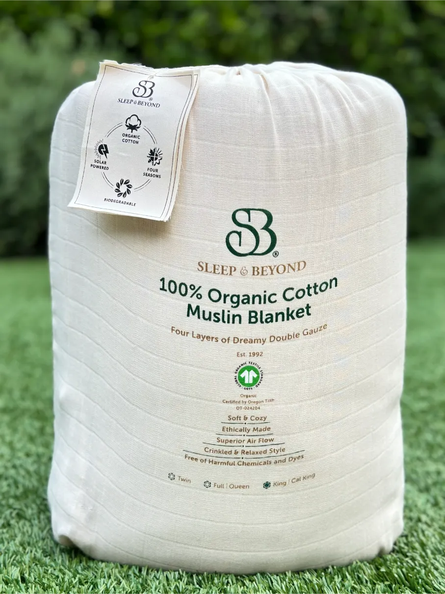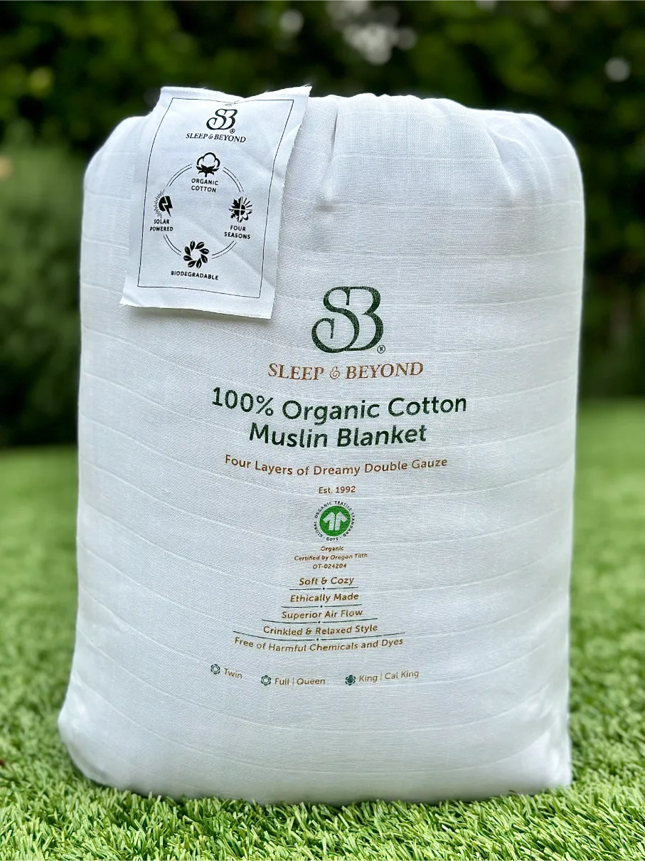 - Sleep longer with our soothing blanket made of 4 layers of dreamy double gauze GOTS-certified organic cotton muslin fabric.