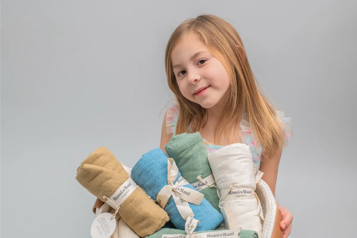 100% organic cotton muslin double gauze fabric. Soft & cozy.